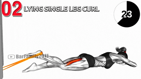 → 俯卧,弹力带一端套在一只脚踝,另一端固定在身后低处
