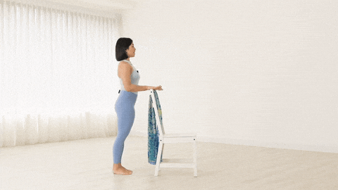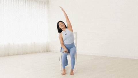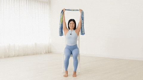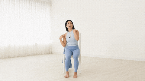 → 保持骨盆稳定,不要离开椅子。保持5次深呼吸