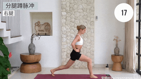 → 完成后换左腿在前重复。