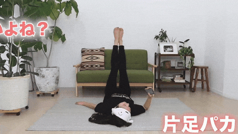 → 呼气时右腿下压伸直,吸气时左腿弯曲上抬,像在空中踩脚踏板。