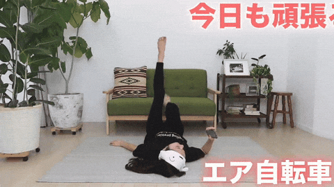 → 开始模拟踩自行车动作:右腿屈膝向胸口拉近,同时左腿向前下方伸直