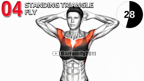 → 动作节奏均匀可控,重点是胸部的"开-合-挤压"。