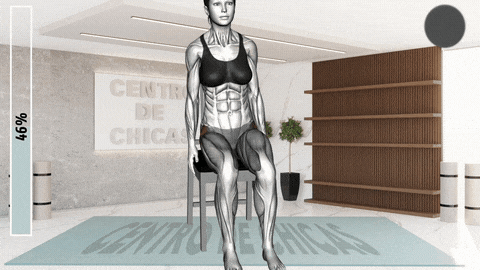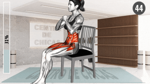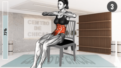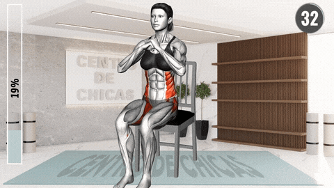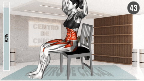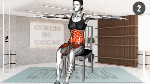 → 坐在椅子前缘,双脚平踩地面与髋同宽,核心收紧。