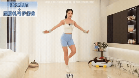 → 在侧弓步最低点,可以加入髋外展,伸直右腿向右侧抬起