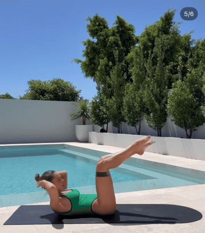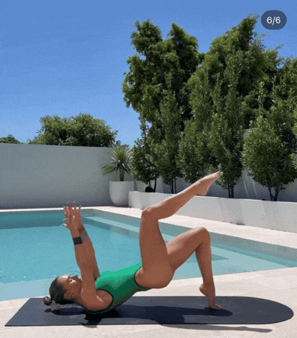 这个动作同时练习下腹、上腹和大腿内侧,是核心与臀腿结合的高强度动作