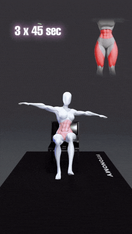 → 坐在椅子前端,双脚平放地面与髋同宽