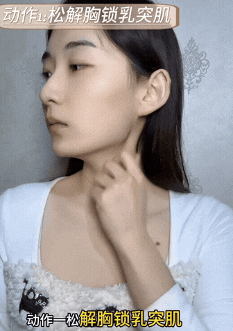 → 从耳后到下锁骨,沿着这条肌肉轻轻按揉、提捏,像在"揉面团"一样。