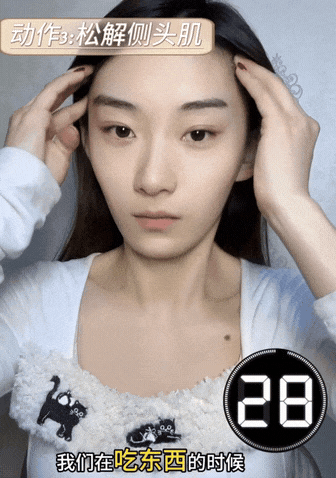 → 也可以做小圈按摩,用指腹在颞肌区域画小圈,从下往上、从前往后按摩