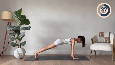 → 从四足跪姿,双手与肩同宽,双腿伸直脚尖支撑。身体成一直线