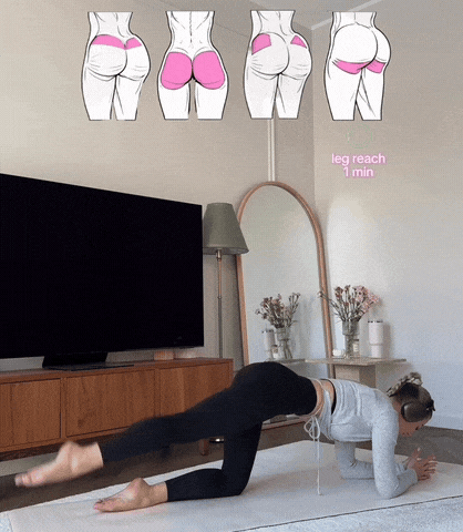→ 抬至大腿与躯干同线,不要为了高度塌腰。顶点停1秒,极限收紧臀部