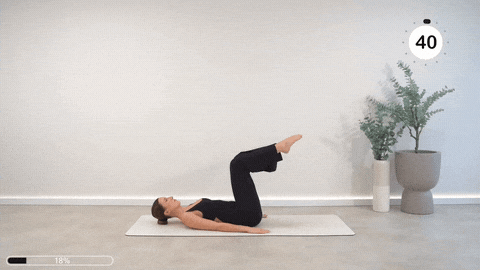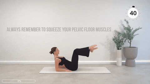 → 核心与骨盆底全程收紧。呼气单腿向前缓慢伸直,膝盖对齐髋关节
