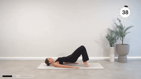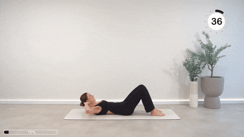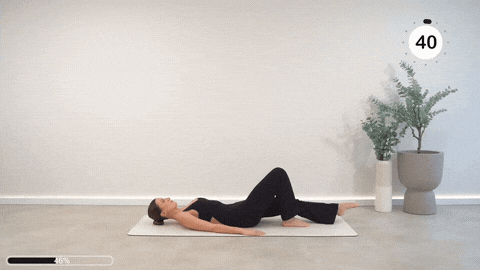 → 吸气从胸椎开始逐节下放,腰背一节一节回到垫面,尾骨最后落地