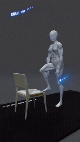 → 双脚与髋同宽站立,距离椅子约10-15cm