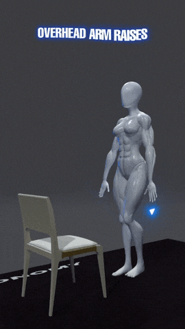 → 站在椅子前方,双脚与髋同宽,距离椅子约20-30cm。核心轻收,肩膀放松