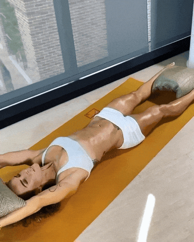 → 仰卧进入“空心”位:下背轻压地,双臂持枕过头,双腿夹枕悬空。
