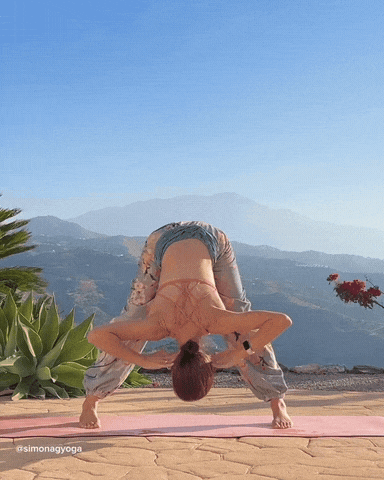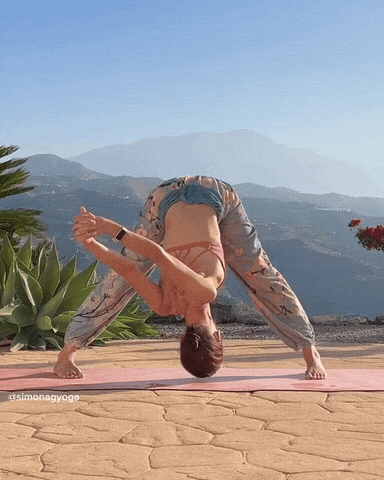 → 呼气身体向前折叠。