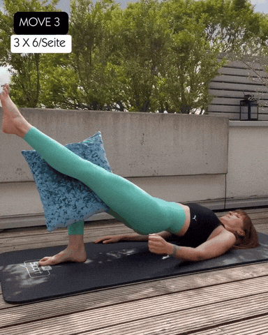 → 核心发力锁住骨盆,确保枕头水平不晃动,防止抬腿侧骨盆下掉或旋转。