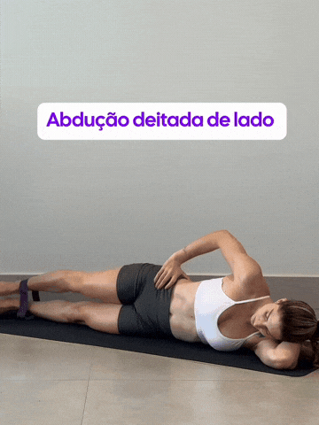 → 呼气抬腿,用臀中肌的力量把上侧腿向上抬起,膝盖朝向正前方。