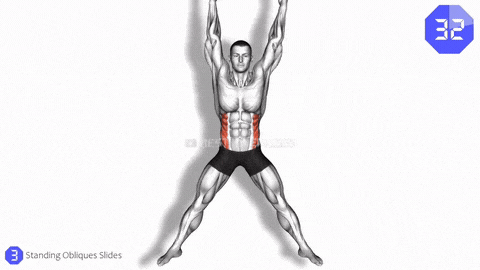 → 呼气时一侧腿向旁侧点地滑出,同时感受同侧的侧腰像折扇一样收紧