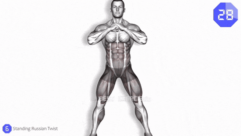 → 以胸椎为轴心,带动上半身向左右两侧匀速转动。