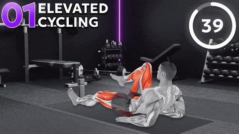 →双腿抬离地面,交替做踩单车动作