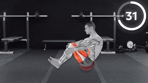 →坐姿后身体微微后倾,双脚离地保持平衡
