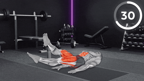 →仰卧屈膝,双脚踩实地面,手臂自然打开稳定身体