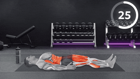→仰卧平躺,双手放身体两侧,核心先收紧