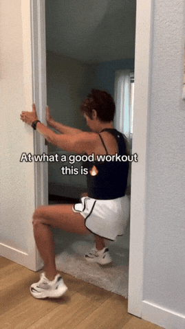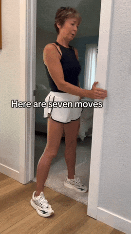 今天这组动作,只需要一个门框,利用支撑+深蹲+抬腿+静力保持的组合,让你的大腿、腹部、臀部持续发力出汗。