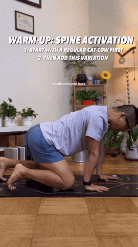 → 吸气时拱背,胸部打开,眼睛看前上方