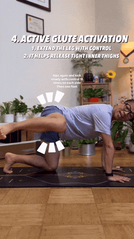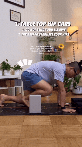 → 吸气髋部向前,呼气再向后。像在"磨石臼",前后移动10次