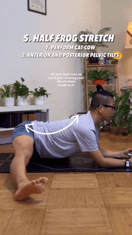 → 吸气拱背,呼气髋部向后推,右脚下压垫子