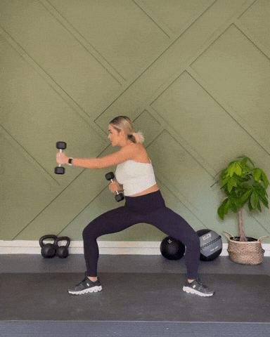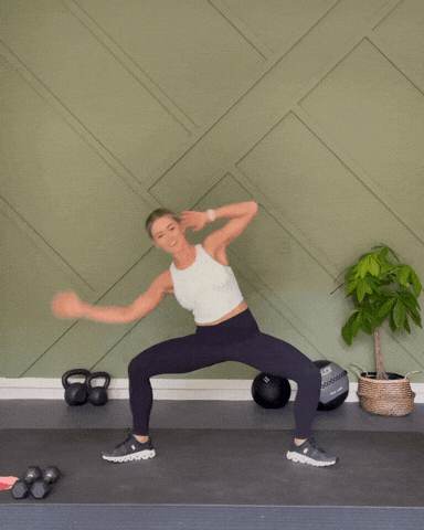 → 保持蹲姿,两侧交替推10次,做3组