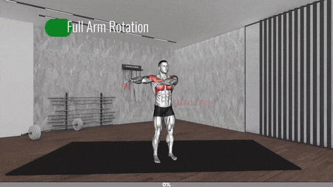 → 双臂抬至肩膀高度,在身体前方顺时针转动