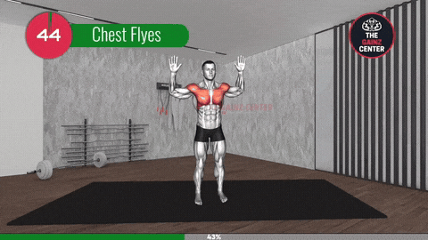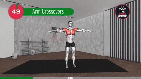 → 双臂向前交叉,再向两侧打开回到起始位