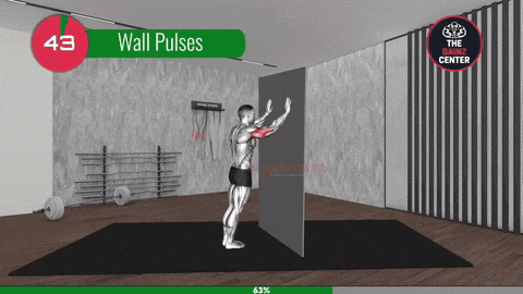 → 双臂抬起,手掌贴住墙面,手肘自然微屈